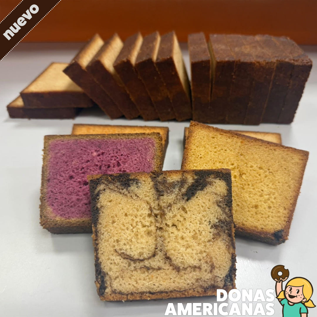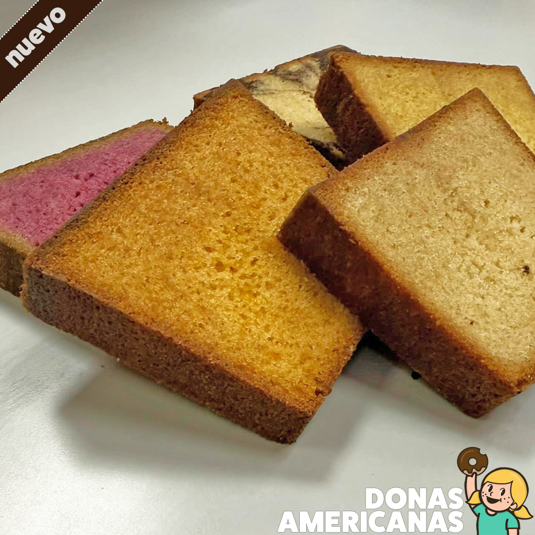 13 Deliciosas Rebanadas de Panqué casero, suave y esponjoso, disponible en deliciosos sabores: Elote, Naranja, Mármol, Plátano y Blue Berry.